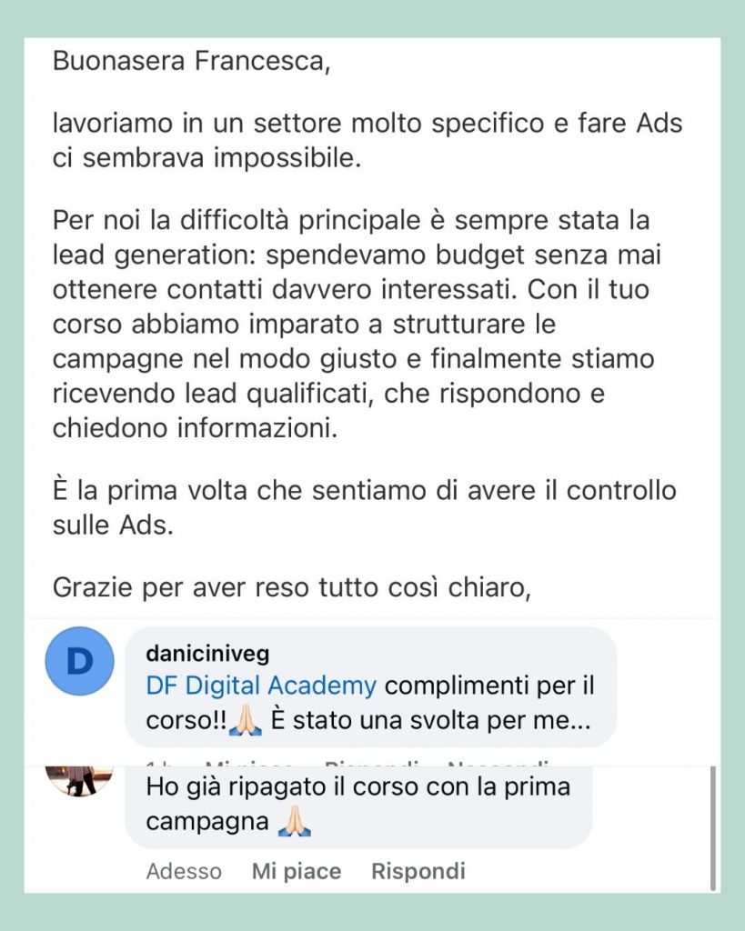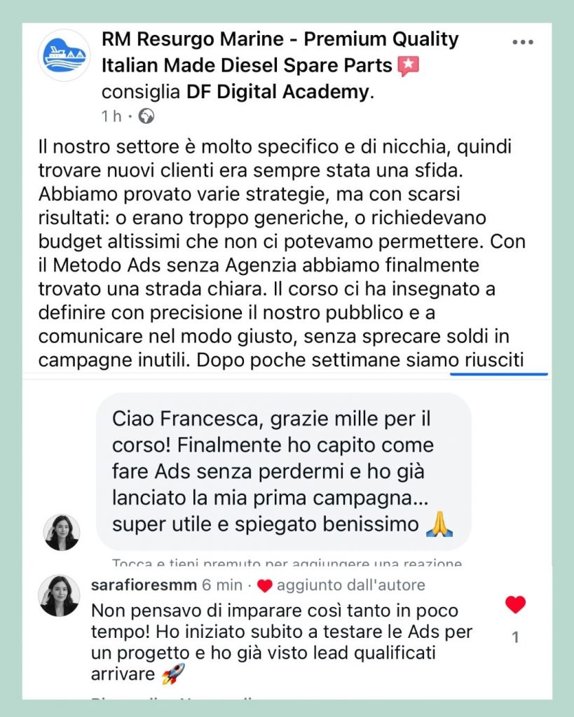 Con Metodo Ads Senza Agenzia impari passo dopo passo a creare campagne su Facebook e Instagram che funzionano davvero, senza buttare soldi e senza dover dipendere da consulenti esterni.