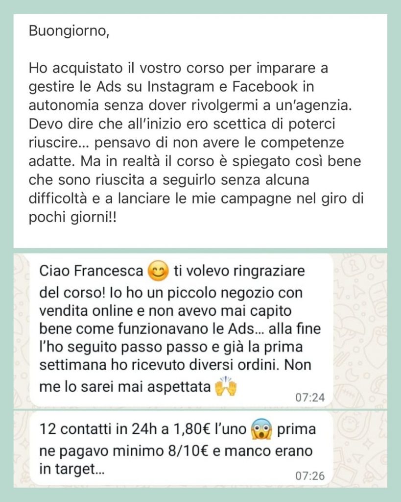 Ogni fase della creazione delle tue Ads è spiegata in video. Ti guiderò passo dopo passo, come se fossi lì con te, rendendo tutto facile da seguire. Potrai creare le tue campagne su Facebook e Instagram mentre guardi, senza confusione.